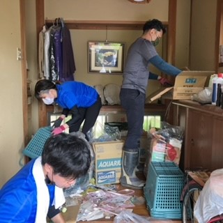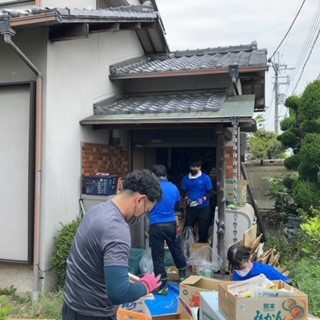 室内に入れるようにする為、玄関にある様々な物を外に出して仕分け作業を進めます。