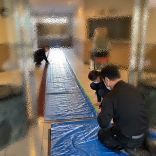 マンションの共有部分を養生します。