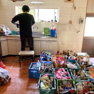 室内にあった沢山の賞味期限切れの飲料や調味料を片づけていきます。