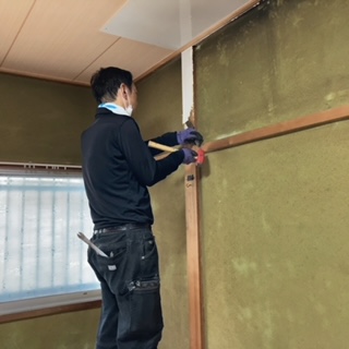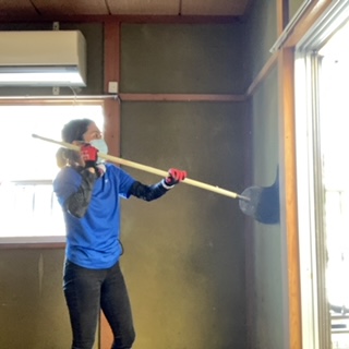 室内の片づけが終わったので、壁にこびりついた埃を落とします。