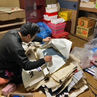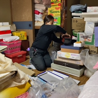 室内に沢山ある箱は全て中を確認してから、分別仕分け作業をして片づけていきます。