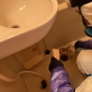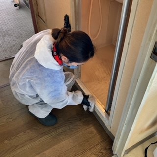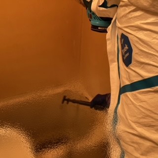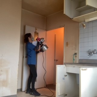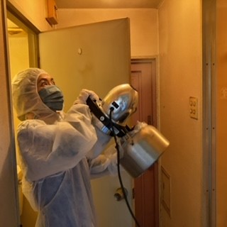 汚染箇所を清掃する前に、室内の消毒作業をします。