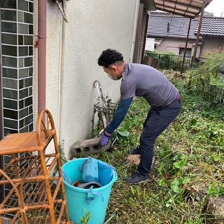 室内片づけと査定買取が進む中、外まわりを片づけます。