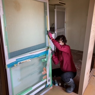 網戸に貼られたテープを綺麗に剥がして片づけます。