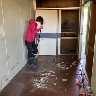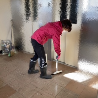 女性スタッフ中心に玄関まわりからキッチンを手際よく片づけます。
