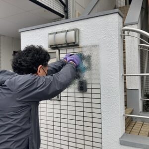 石の表札を削って取り外します。