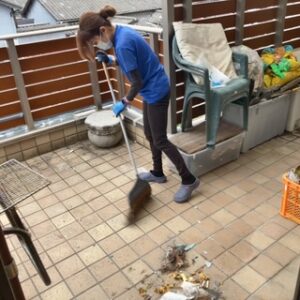 バルコニーを片づけて掃除します。
