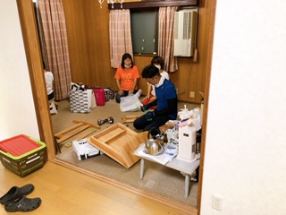 テーブルはばらして持って帰るとの事で、組み立てしやすいように部品を小分けし、