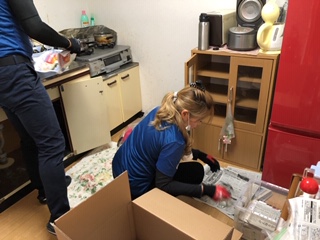 仕分けは丁寧に女性スタッフ中心に、食器も一つ一つ梱包します。