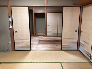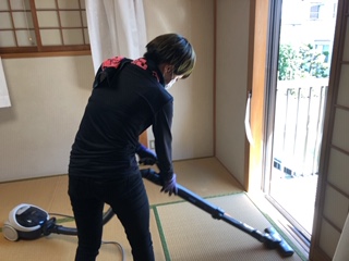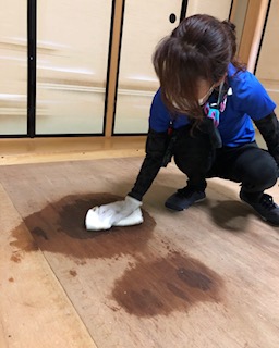畳を撤去した後は消臭除菌も女性スタッフが丁寧に作業を進めます。