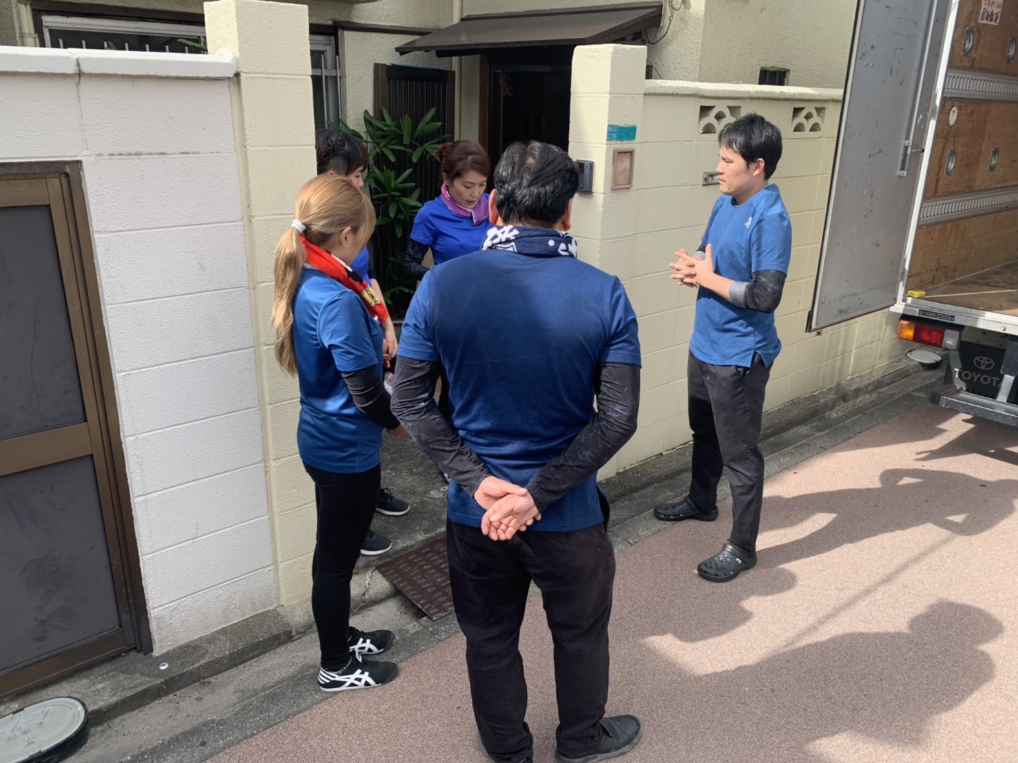 作業前にはマネージャーとスタッフが作業工程や情報共有のミーティングを行います。
