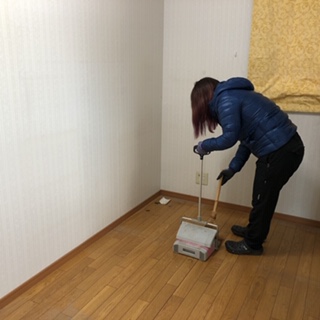 仕分け搬出後は女性スタッフで丁寧に清掃作業を進めます。