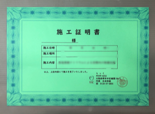 作業完了時には除菌抗菌作業の、施工証明書を発行させて頂きましたので