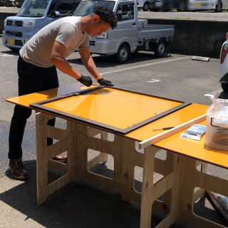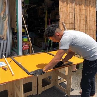 『らっく』の代表が手際よく網戸の張り替え作業をします。