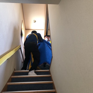 階段は特に細心の注意を払い、丁寧に搬出します。