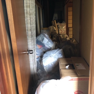 廊下に溜まっている生活雑貨などを片付けて欲しいとのご依頼です。