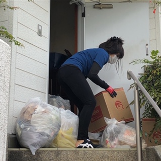 訪問介護スタッフの方が纏めた廃棄物の確認をしながら仕分け作業を進めます。