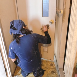ドアを塗り替えるので綺麗に汚れや埃を落とします。