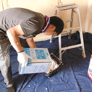 壁紙は貼り替えますが塗料がつかないよう養生します。
