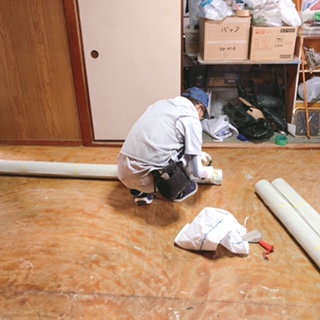 『らっく』の協力会社様の一つリフォーム業者様に床の張替え施工をして頂きます。
