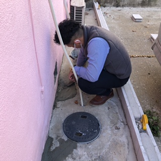 隣家の方から境界線付近のコンクリート床に亀裂があるとのことで、