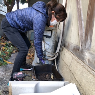 配線、排水パイプを丁寧に外します。