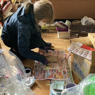食器類はリサイクルさせていただくので一つひとつ梱包します。
