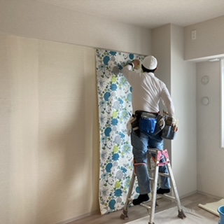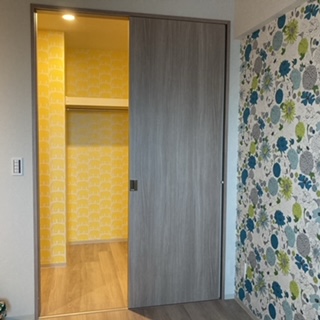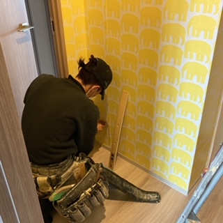 『らっく』の代表が依頼者様と打ち合わせを重ね、協力会社のリフォーム業者様に壁紙の リフォーム対応をして頂きました。3日間の工程で、室内とクローゼットの壁紙の貼り替えやタイルを貼って 室内のイメージチェンジをします。