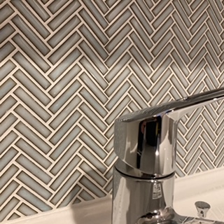 洗面台の壁面は一部をタイル貼りにして空間の雰囲気をがらりと変えます。