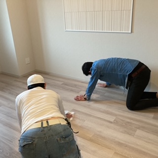 貼り替え後に、床の拭き掃除をして作業完了です。