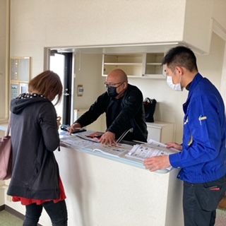 『らっく』の協力会社様のひとつ、住宅設備業者様とリフォームの打合せをします。