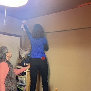 お部屋の掃除をします。 翌日ベッドを設置するとの事なので、より丁寧に清掃させて頂きました。