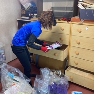タンスの中の必要な物と、そうでない物を確認しながら片づけます。