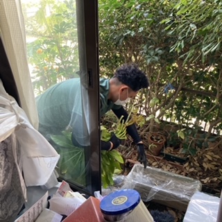 庭の沢山の植木鉢や植木は全て片付けて欲しいとの事でしたので、『らっく』の代表が手際よく片付けます。![]()
