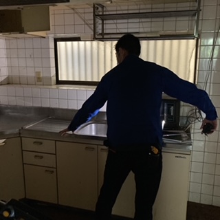キッチン設備の採寸をします。