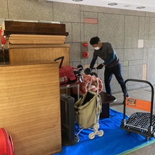 住人の方々のご迷惑にならないよう大型家具類はエントランスに纏めて…