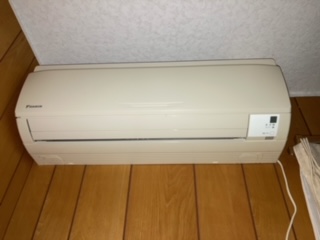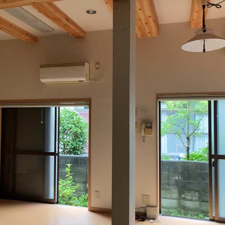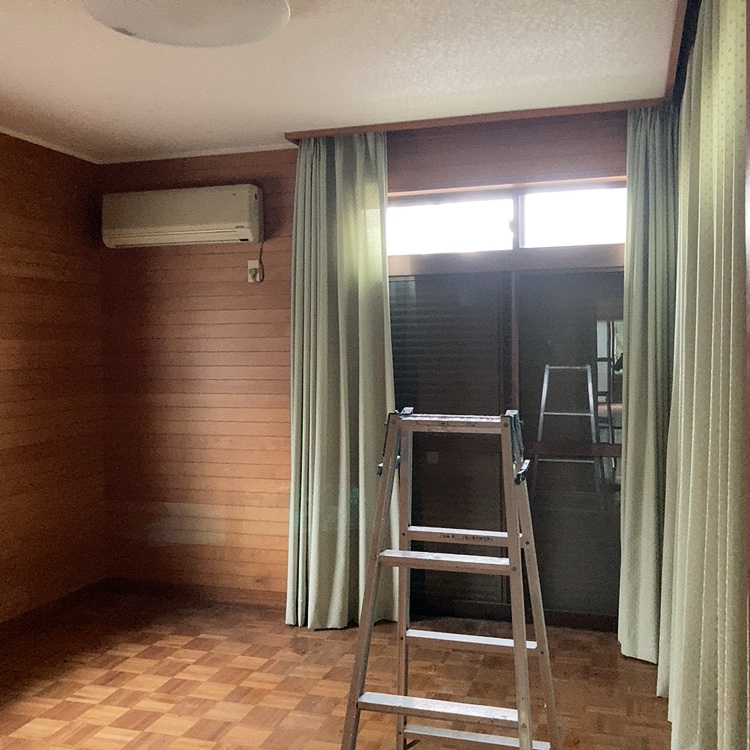 室内のカーテン、照明器具、エアコンを片づけます。