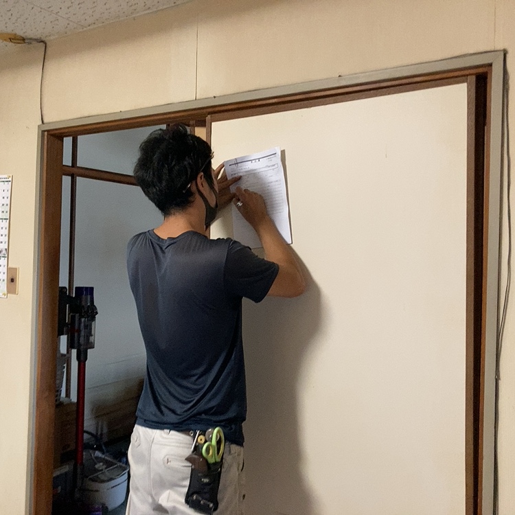 『らっく』の協力会社様の一つ、畳や襖の取扱い業者様に採寸して頂きます。![]()