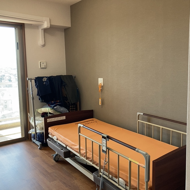介護ベッドと収納箪笥は施設設備品なので置いておきます。