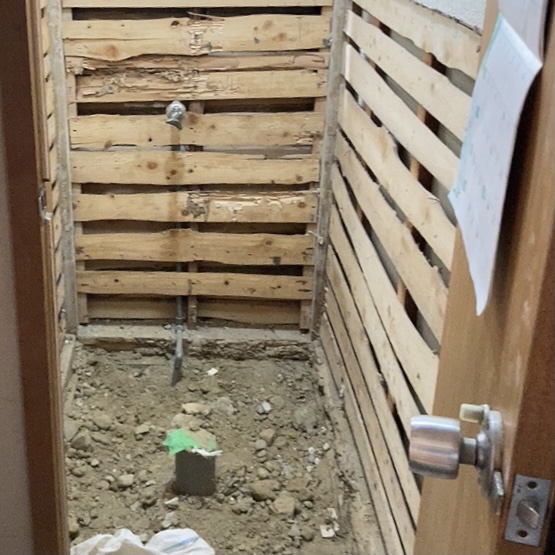 既存トイレが撤去され、壁と床も剥がしてトイレも新しく生まれ変わります。