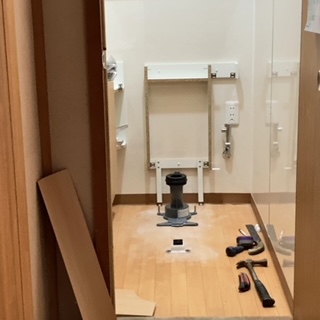 トイレ内の壁や設備が仕上がったので新しい便器の取り付けを進めていきます。