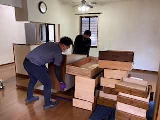 2階の大型家具を片づけます。